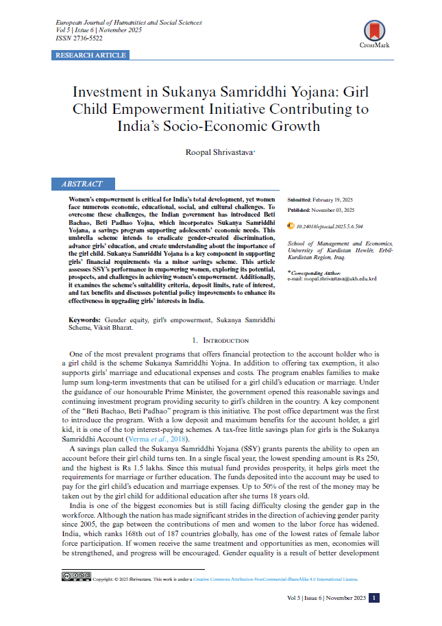 Investment in Sukanya Samriddhi Yojana: Girl Child Empowerment Initiative Contributing to India’s Socio-Economic Growth