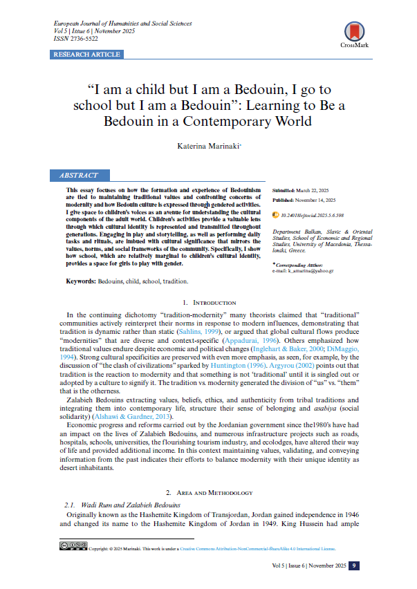 “I am a child but I am a Bedouin, I go to school but I am a Bedouin”: Learning to Be a Bedouin in a Contemporary World
