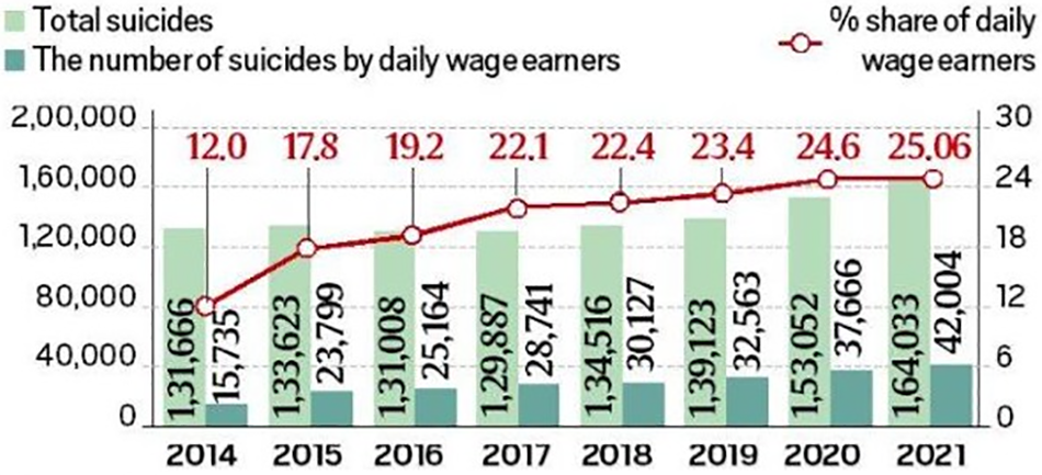 Fig. 1. Rising suicide rate of the daily wage workers (Source: NCRB, 2022).