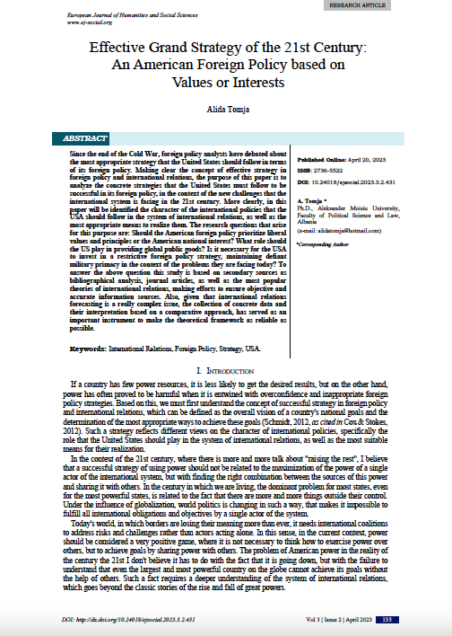Effective Grand Strategy of the 21st Century: An American Foreign Policy based on Values or Interests