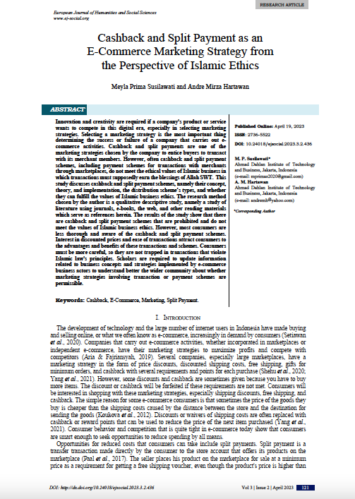 Cashback and Split Payment as an E-Commerce Marketing Strategy from the Perspective of Islamic Ethics