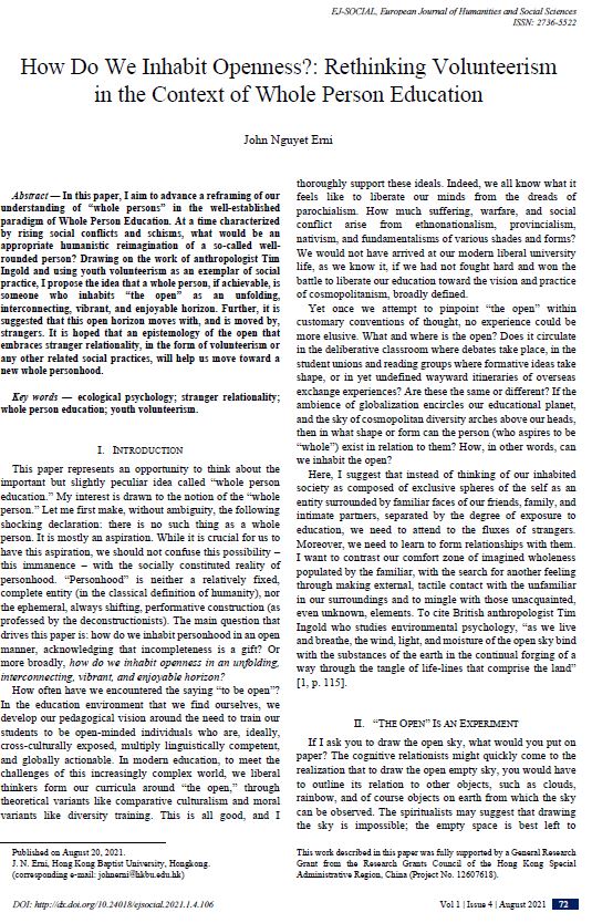 How Do We Inhabit Openness?: Rethinking Volunteerism in the Context of Whole Person Education