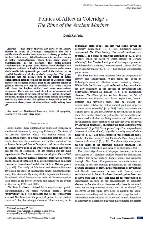 Politics of Affect in Coleridge’s The Rime of the Ancient Mariner