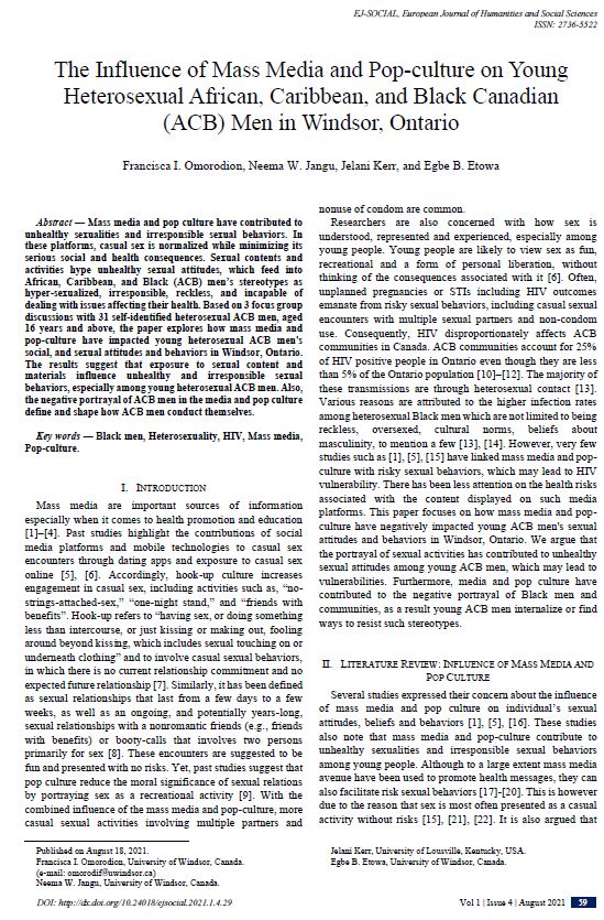 The Influence of Mass Media and Pop-culture on Young Heterosexual African, Caribbean, and Black Canadian (ACB) Men in Windsor, Ontario
