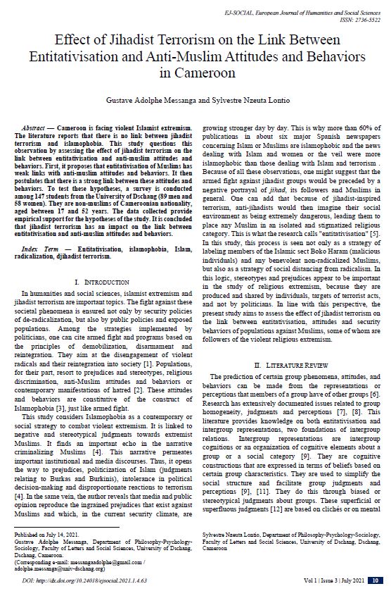 Effect of Jihadist Terrorism on the Link Between Entitativisation and Anti-Muslim Attitudes and Behaviors in Cameroon