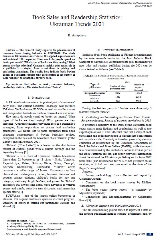 Book Sales and Readership Statistics: Ukrainian Trends 2021
