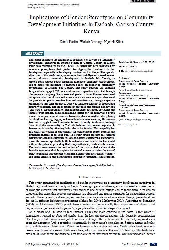Implications of Gender Stereotypes on Community Development Initiatives in Dadaab, Garissa County, Kenya