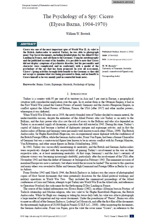 The Psychology of a Spy: Cicero (Elyesa Bazna, 1904-1970)