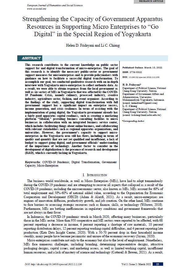 Strengthening the Capacity of Government Apparatus Resources in Supporting Micro Enterprises to “Go Digital” in the Special Region of Yogyakarta