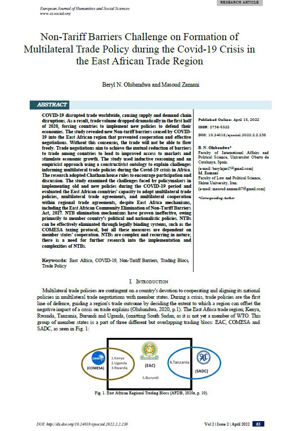 Non-Tariff Barriers Challenge on Formation of Multilateral Trade Policy during the Covid-19 Crisis in the East African Trade Region