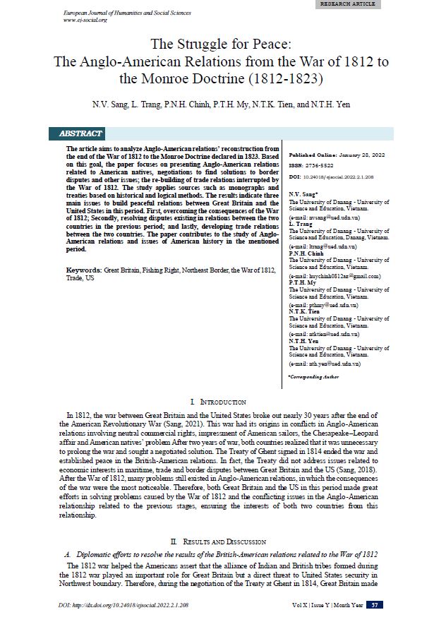 The Struggle for Peace: The Anglo-American Relations from the War of 1812 to the Monroe Doctrine (1812-1823)