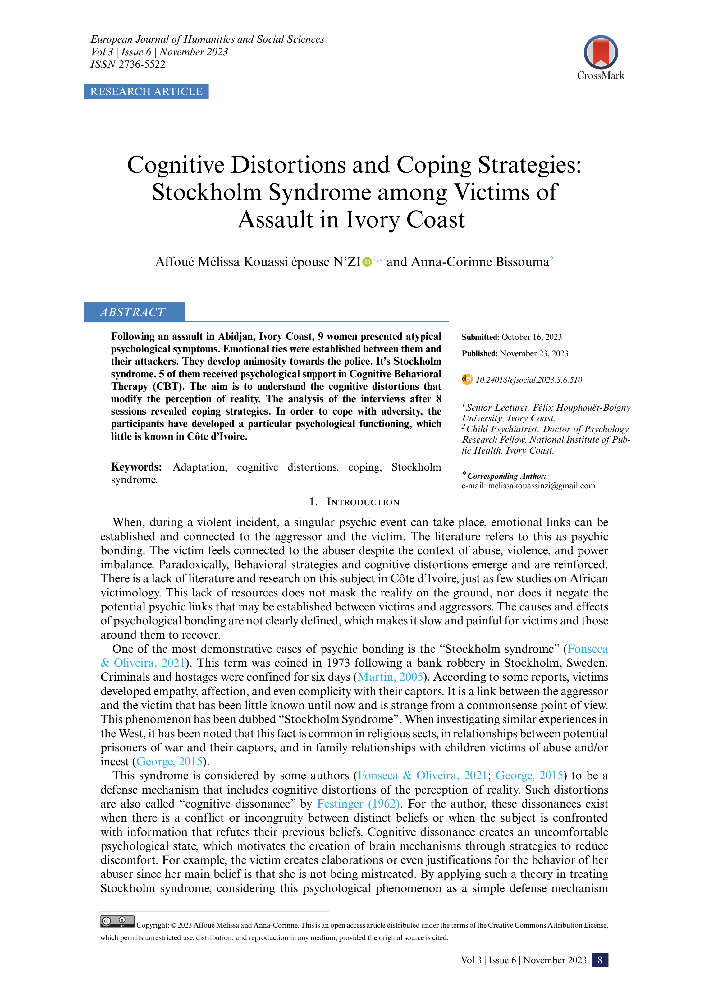 Cognitive Distortions and Coping Strategies: Stockholm Syndrome among Victims of Assault in Ivory Coast