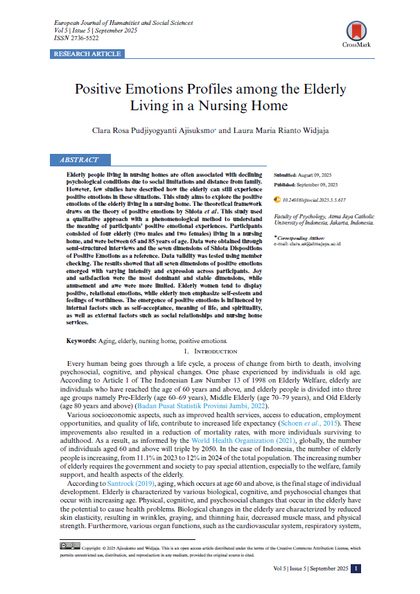 Positive Emotions Profiles among the Elderly Living in a Nursing Home