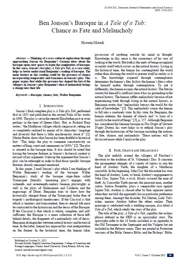 Ben Jonson’s Baroque in A Tale of a Tub: Chance as Fate and Melancholy
