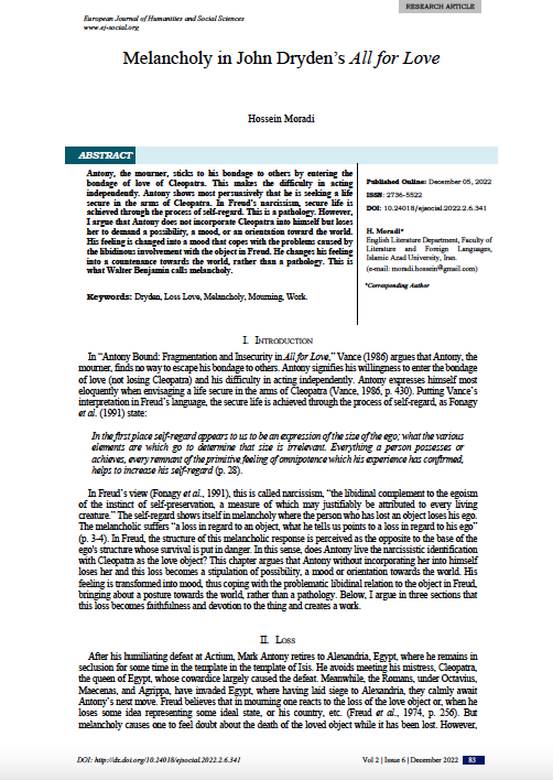 Melancholy in John Dryden’s All for Love