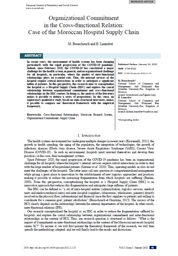 Organizational Commitment in the Cross-functional Relation: Case of the Moroccan Hospital Supply Chain